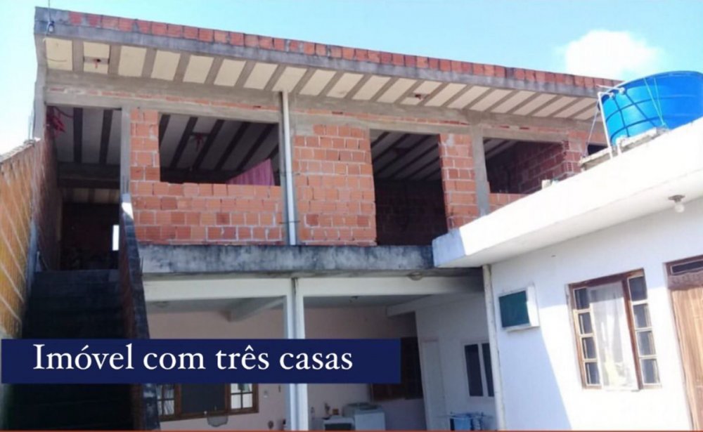 Terreno de 200m² com três casas, estando uma em fase de acabamento.